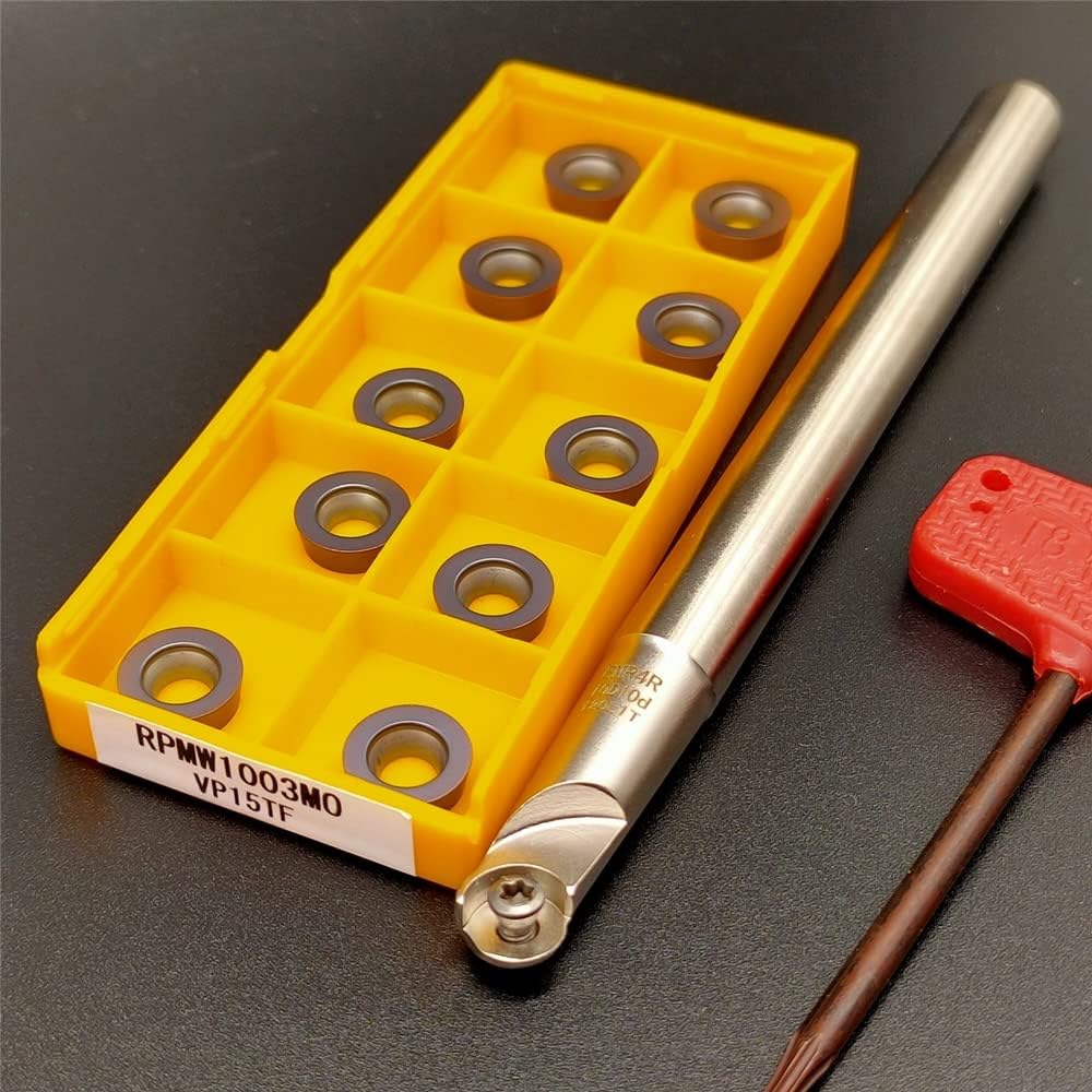 Round Indexable End Mill Holder EMR C..-5R..-…-.T CNC Mill for RPMW\T10 C(shank)-5R (Diameter) -Length-(no. flute) T insert: RPMT10 Not included Screw: M4 (inclueded) Color: Elegant Silver
